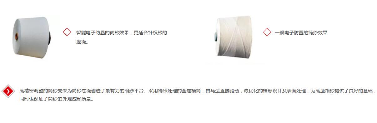 該機(jī)型具有先進(jìn)的電子信息技術(shù),智能化控制捻結(jié)循環(huán),通過(guò)機(jī)、電、儀、氣的一體化設(shè)計(jì)理念,實(shí)現(xiàn)了符合國(guó)家推廣的節(jié)能減排,機(jī)器人替代人的現(xiàn)代化高端紡機(jī)裝備。